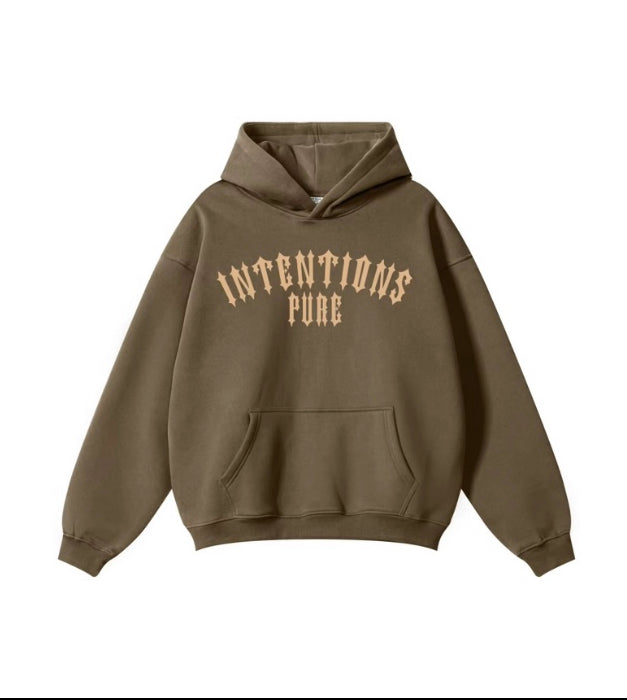 The Essential Brown Intentions Pure Hoodie grounds your style with deep earth tones and heavyweight warmth. Made from 435 GSM ultra-soft cotton fleece, this piece is built to move through every season of your life.